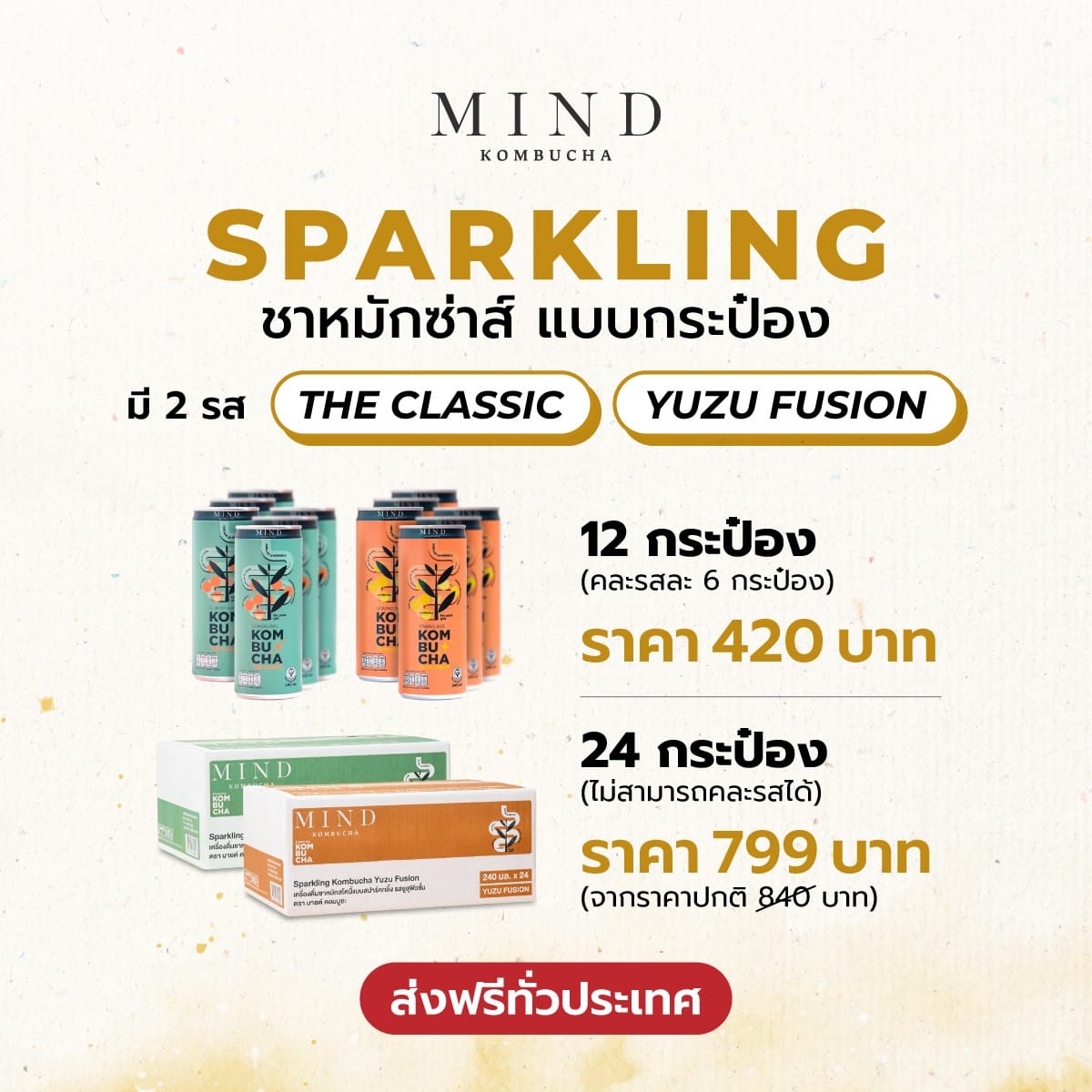 – สั่งมายด์ คอมบูชะ สปาร์คกลิ้ง แบบส่งตรงถึงบ้านฟรีทั่วไทย 2 ลัง (48 กระป๋อง) สามารถเลือกคละได้ 2 รสอร่อย คลาสสิค และ ยูสุฟิวชั่น ในราคาเพียง 1,598 บาท รับฟรีเคอร์คิวมินช็อต 1 กล่อง คอมบูชะแบบเข้มข้นพิเศษพร้อมขมิ้นชันแท้ ช่วยบำรุงสุขภาพและชะลอวัยเป็นพิเศษ มูลค่าของแถม 720 บาท คุ้มสุด!!!